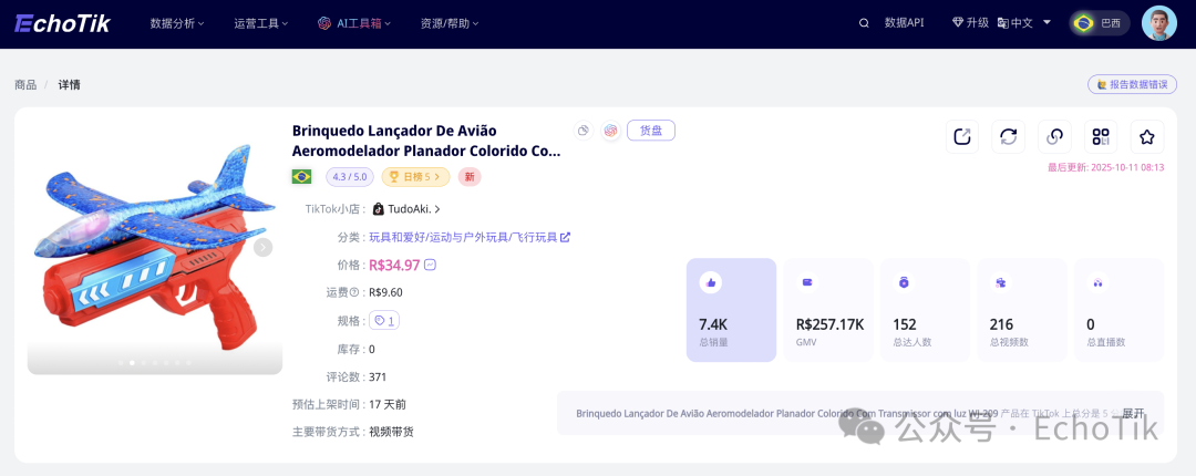 For Brazilian local toy companies (such as Estrela, Candide, Grow, etc.), October's sales results directly determine whether the annual revenue target can be achieved. The search volume of "toys" increased by 120% week-on-week before Children's Day!