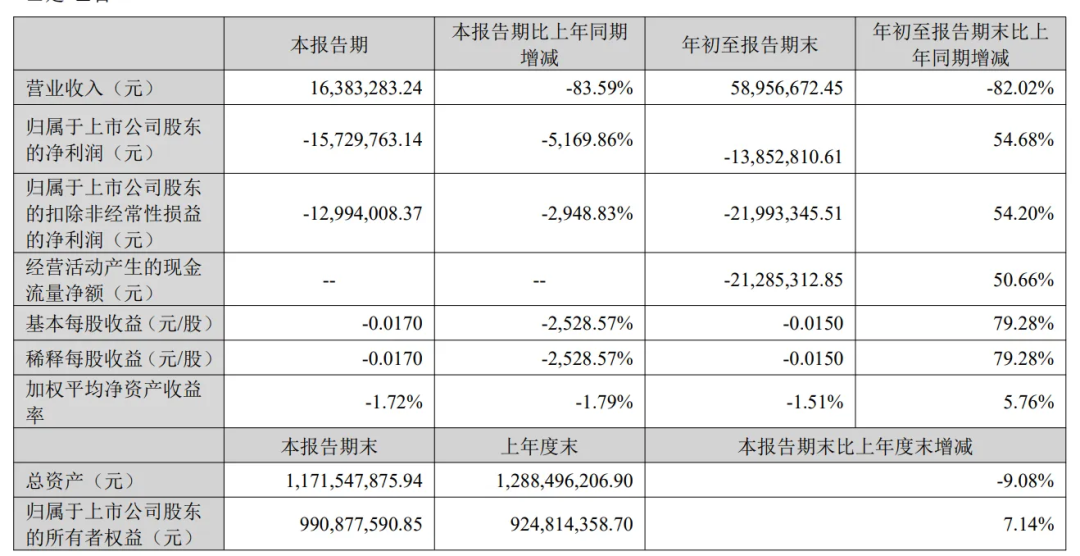 The profit side is also under pressure: The net profit for the third quarter was -15.7298 million yuan, and the loss continued to expand.