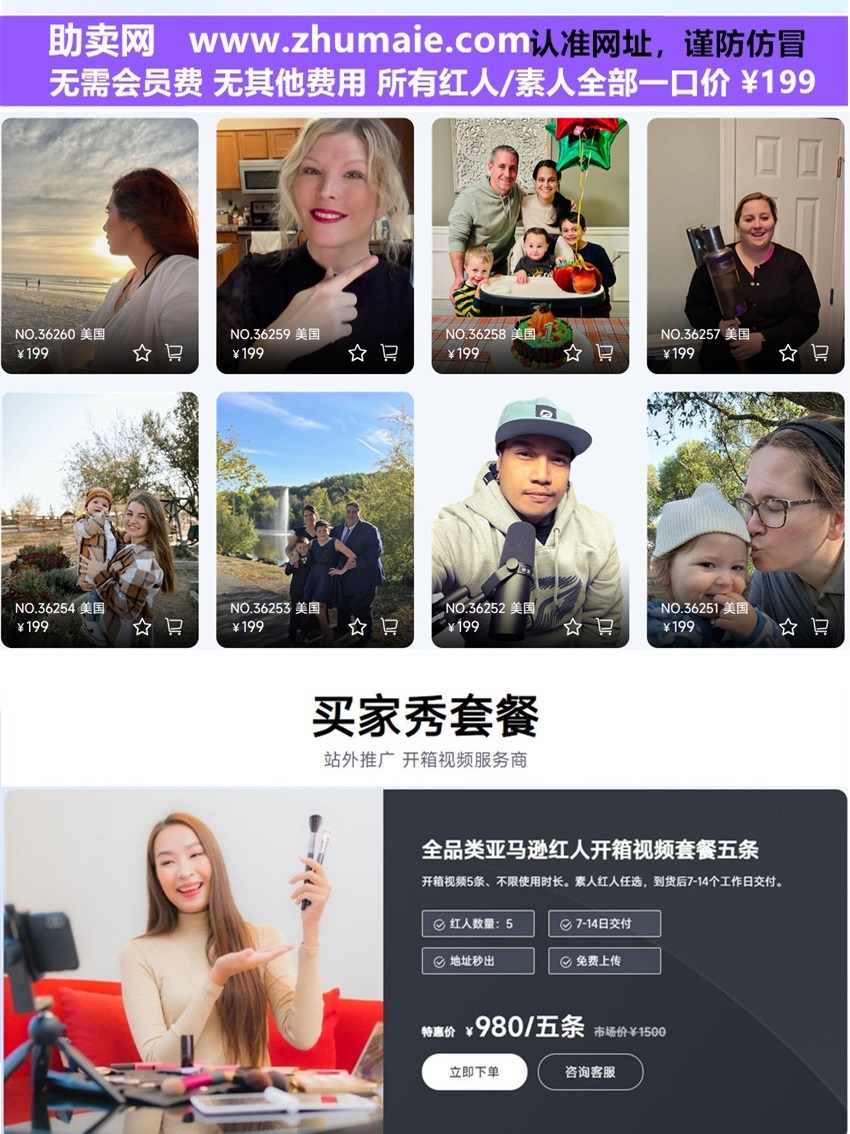 Amazon influencer unboxing video: available in five different packages, with the option to choose either an influencer or a regular user from any platform. The price for these five promotional packages is 980 yuan.