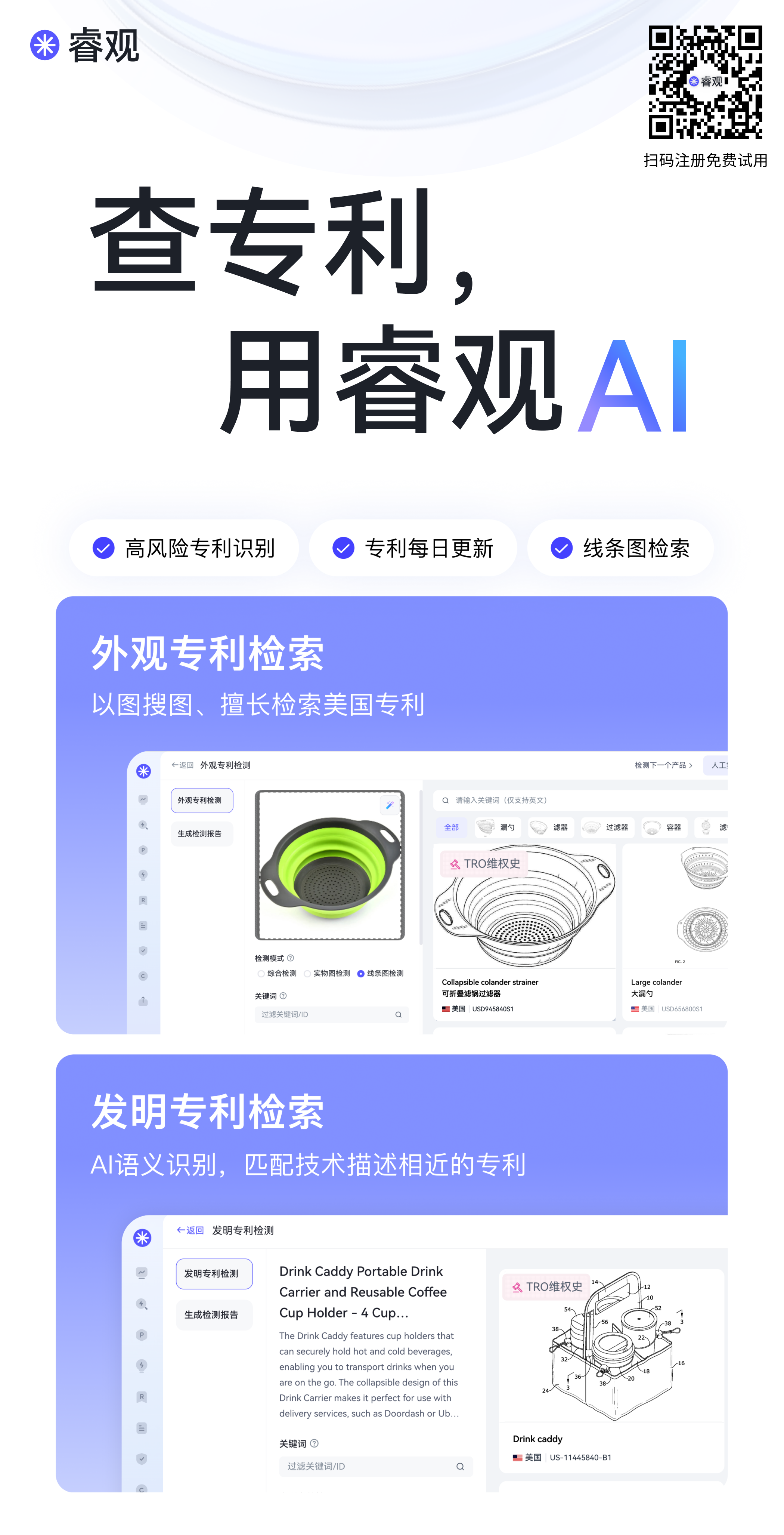 RuiGuan AI contains over 200 million patent records, enabling accurate identification of TRO-related litigation history and rights holders. Patent and trademark information is updated daily.