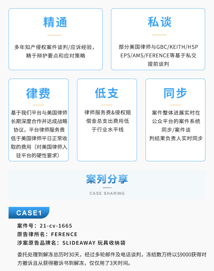 The support platform provided by Maijia consists of an internet team, an intellectual property rights team, as well as carefully selected law firms and lawyers. Our focus is on providing legal assistance to cross-border e-commerce sellers.