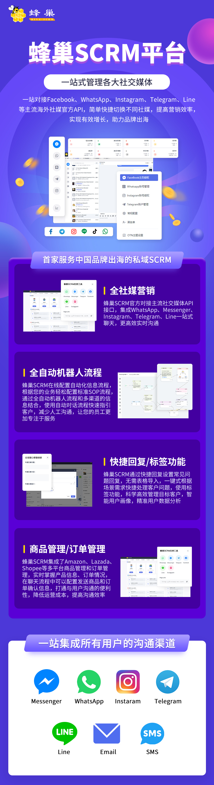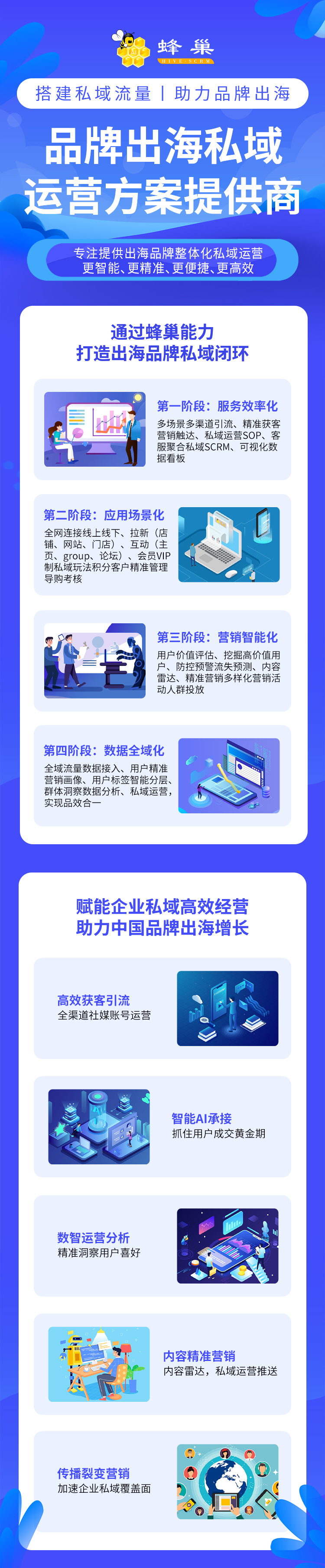 Hive SCRM: A provider of private domain operation solutions for brands expanding their operations overseas. We specialize in offering comprehensive private domain management services for brands looking to enter new markets. We create a closed-loop system for brands’ private domains overseas, making operations smarter, more precise, more convenient, and more efficient. With one-stop management of various social media platforms, we help businesses build private domain traffic and support their international expansion! As the first service provider dedicated to social private domain traffic marketing and growth, Hive SCRM focuses on providing end-to-end private domain management services for cross-border businesses. We aim to help companies overcome challenges such as difficulties in acquiring new customers, low operational efficiency, and loss of customer resources. Our platform connects with all overseas social media platforms and boasts a vast network of influencers. This ensures that each product can be matched with the right influencers, and allows for the one-click publication of marketing content across multiple channels. Our intelligent fan classification system helps build private domain traffic, promotes customer retention, enables detailed user management, facilitates efficient and easy interactions, and supports multi-channel traffic generation. With accurate data, we help businesses identify the right direction for their marketing efforts and increase sales!