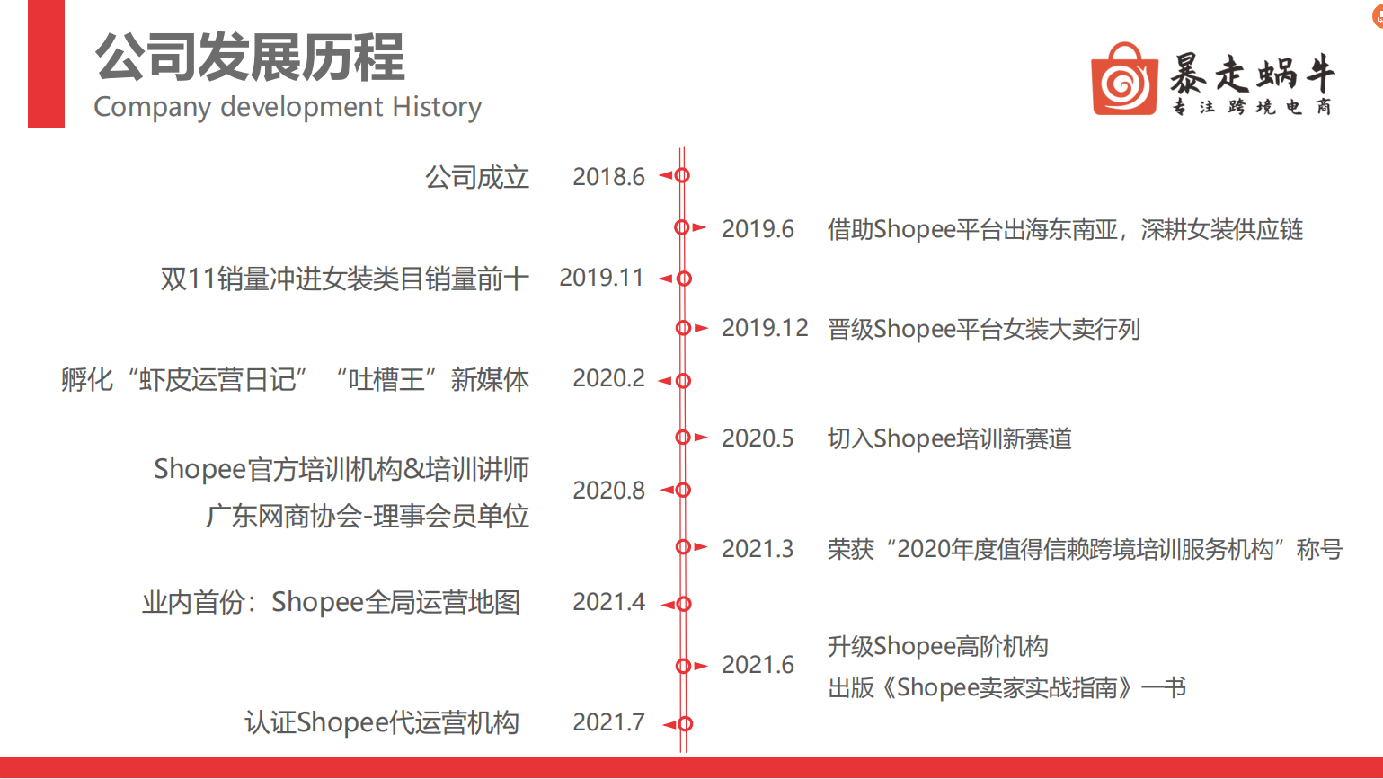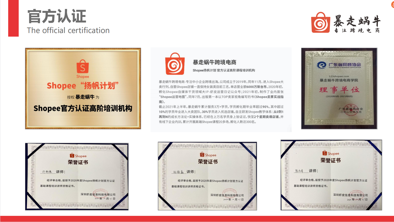 Bazou Snail Cross-border E-commerce – Specializing in helping small and medium-sized enterprises expand their business overseas. The company was founded in 2019, and in November of the same year, it began to see significant success on Shopee. Its self-operated Shopee store has consistently ranked among the top three in the women’s clothing category, with a single-store turnover of 60 million New Taiwan dollars. At the beginning of 2020, the company launched the “Shrimp Skin Operation Diary” public account, a popular content platform on Shopee; in early 2021, it created the first “Shopee Operation Map” in the industry. In July of the same year, the company published the first book written from the perspective of top sellers: “Shopee Seller’s Practical Guide.”