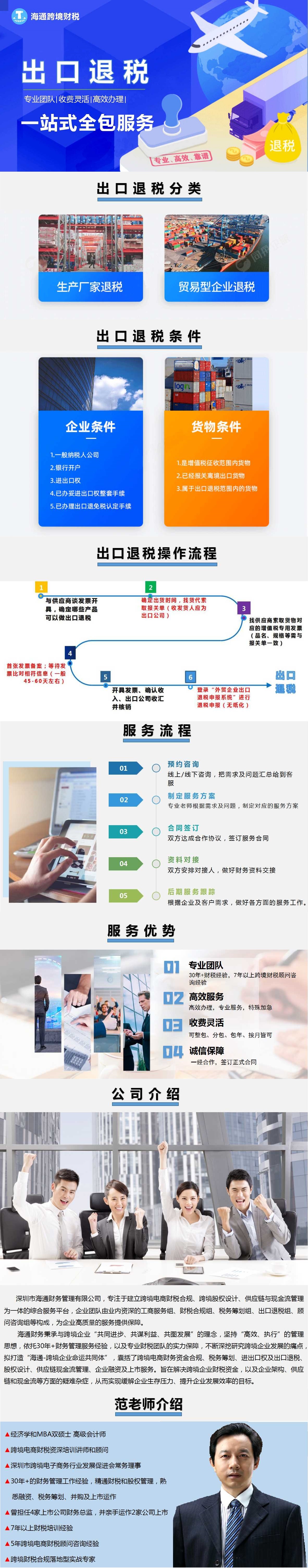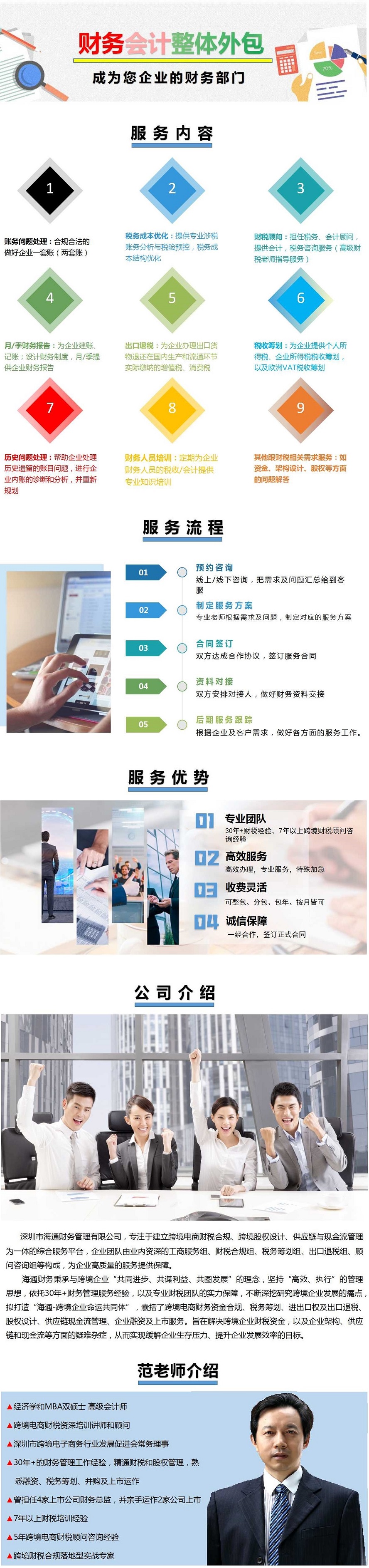 Shenzhen Haitong Financial Management Co., Ltd. is dedicated to establishing a comprehensive service platform that integrates fiscal and tax compliance for cross-border e-commerce, cross-border equity structuring, as well as supply chain and cash flow management. The company’s team consists of experienced professionals in various fields, including business registration, fiscal and tax compliance, tax planning, export tax rebate services, and advisory consulting, ensuring high-quality services for its clients. Haitong Financial adheres to the philosophy of “common progress, shared benefits, and joint development” with cross-border enterprises. It embraces a “high-efficiency, execution-oriented” management approach and relies on over 30 years of experience in financial management services, as well as the expertise of its professional fiscal and tax team. By thoroughly researching the challenges faced by cross-border enterprises in their development, Haitong Financial aims to create a “community of shared destiny” for such enterprises. This community covers various aspects, including fiscal and tax compliance for cross-border e-commerce, tax planning, import and export rights and export tax rebates, equity structuring, supply chain and cash flow management, as well as corporate financing and listing services. The goal is to help cross-border enterprises address their financial and operational challenges, thereby alleviating their operational pressures and enhancing their growth efficiency.
