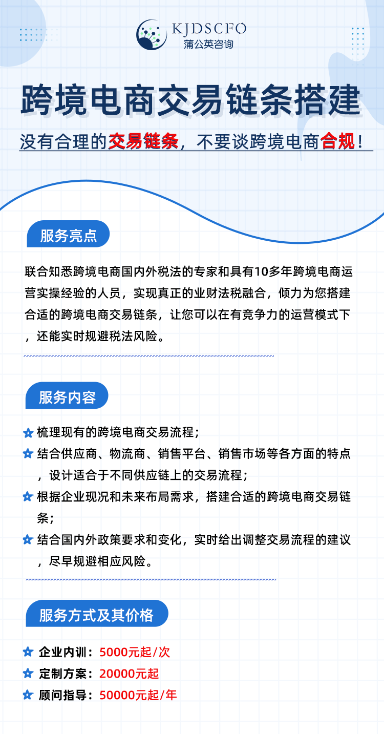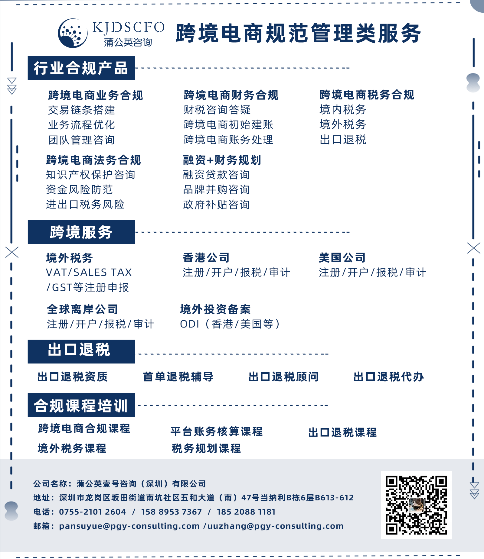 Dandelion Consulting KJDSCFO is dedicated to supporting the rapid, stable, and sustainable development of cross-border e-commerce businesses. By bringing together industry experts in areas such as cross-border e-commerce operations, finance, and taxation, and by collaborating with accountants and lawyers both from within and outside China, the firm specializes in providing cross-border compliance services. These services include business and financial compliance, infrastructure design, training and consulting, export tax rebates, overseas tax and financial matters, as well as applications for government subsidies.