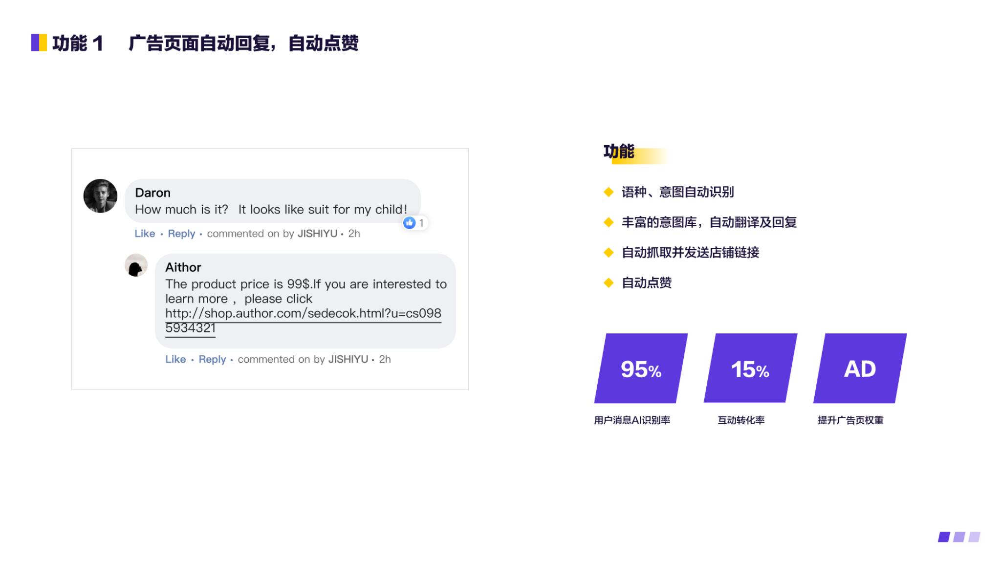 We are a one-stop service marketing SaaS platform. By leveraging our own advanced AI technology, we enable social media channels such as Facebook and Instagram to interact more effectively with potential buyers. We also utilize platforms like Shopify for building online stores, helping sellers increase conversion rates and boost their revenue. Since its inception, Timiyu has helped numerous leading e-commerce companies improve their operational efficiency and marketing effectiveness, and has attracted the attention of several investment institutions.