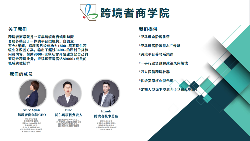 CrossBorderer Business Academy is a platform-based organization that integrates cross-border e-commerce training with a range of complementary services. In the five years since its establishment, CrossBorderer has successfully provided cross-border business improvement solutions for over 1,600 sellers. It has produced more than 3,400 pieces of original content, including articles and Q&A sections, and has helped over 8,000 sellers build their own Amazon cross-border businesses from scratch. The academy also manages a private cross-border community with as many as 82,000 members.